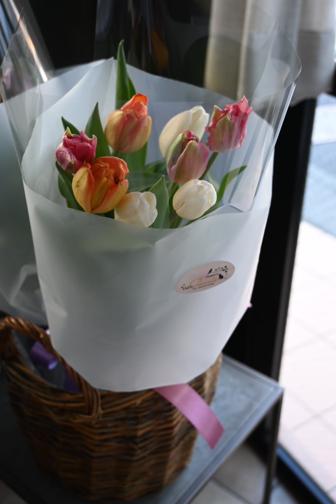 新鮮な国産チューリップ3種類を8本まとめたブーケです。