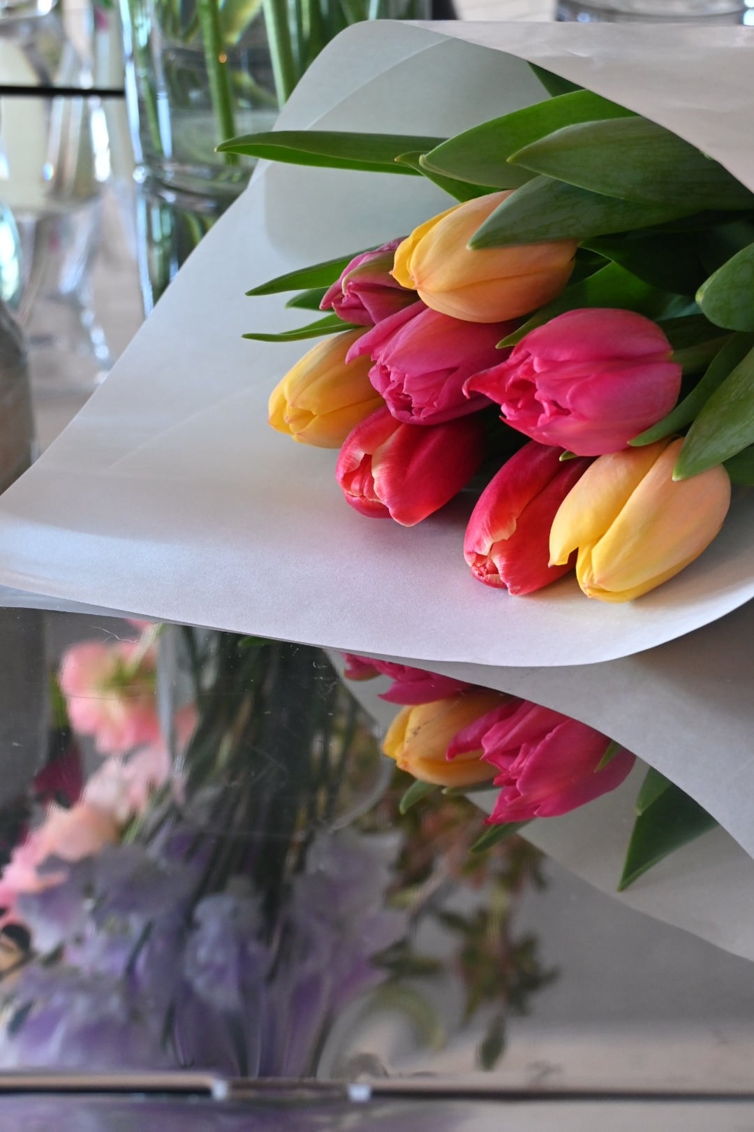 新鮮な国産チューリップ3種類を8本まとめたブーケです。